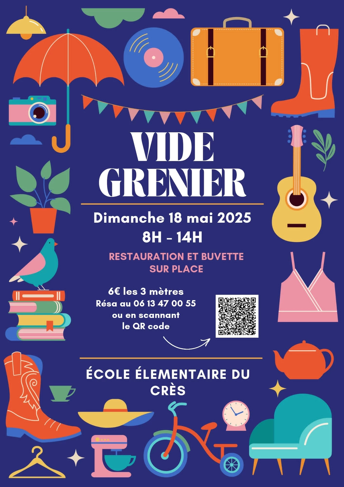 Vide grenier de l'école du Crès à Millau le dimanche 18 mai de 8h à 14h.